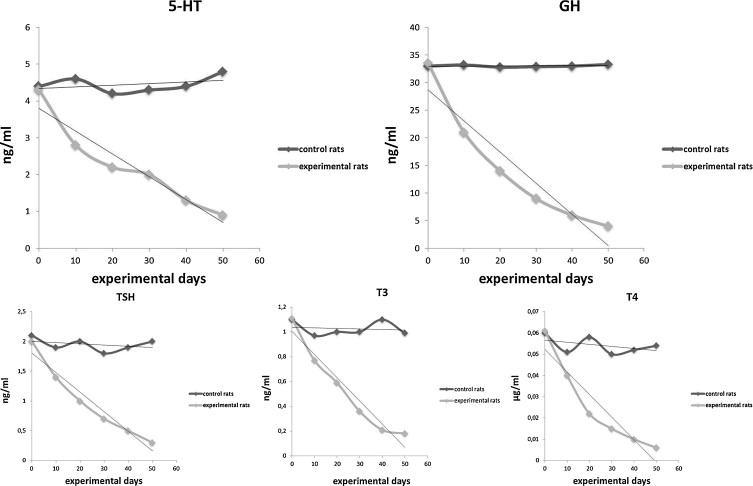 Without sufficient tryptophan the levels of serotonin (5-HT), growth hormone (GH) and the thyroid hormones TSH, T4 & T3 plummet (Musumeci. 2015).